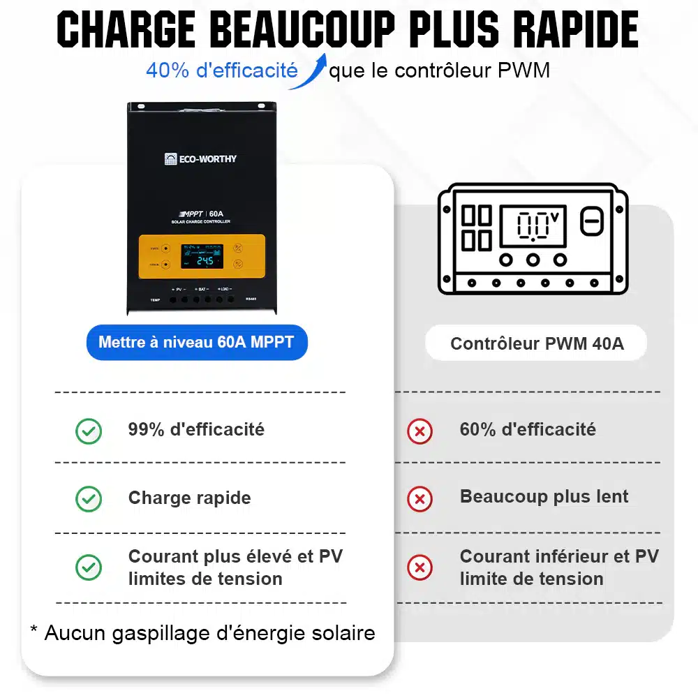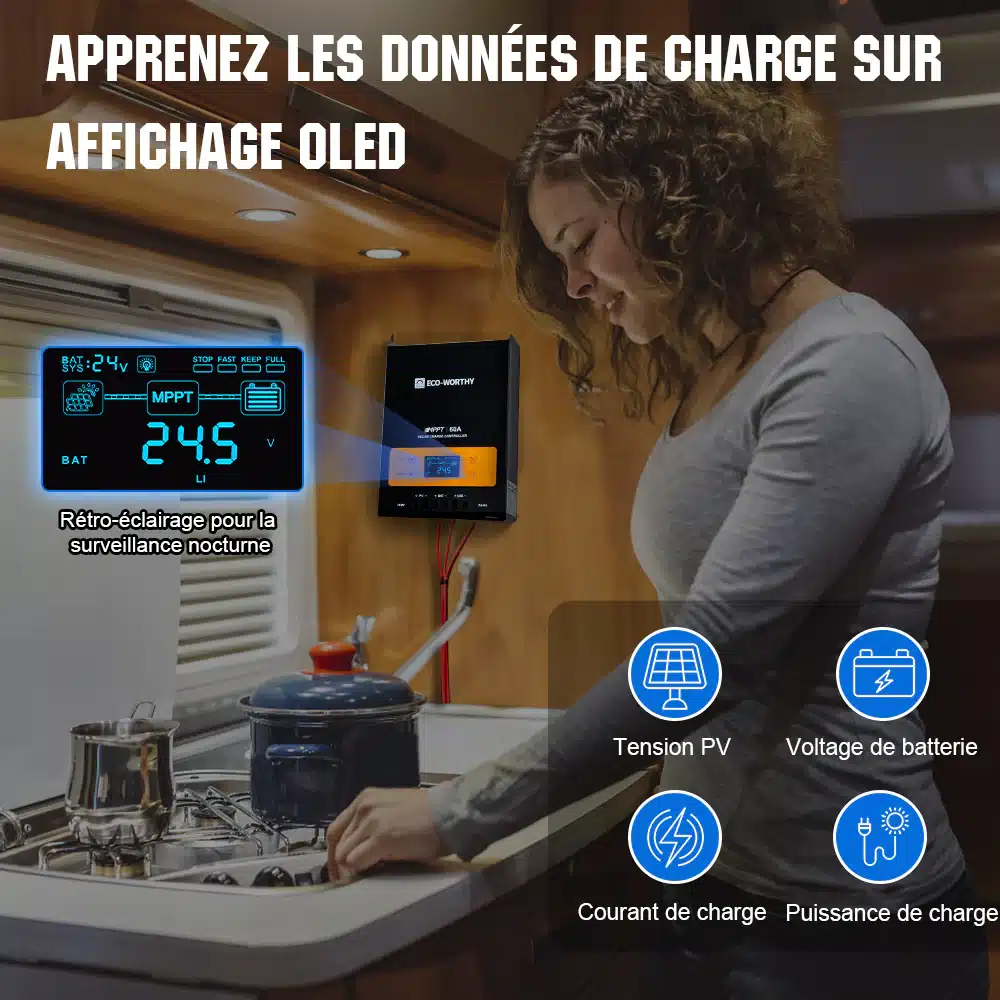 Prêt à passer à l'action ? Contactez dès maintenant eco-worthy pour plus d'informations et pour faire l'acquisition de votre régulateur de charge solaire 60A MPPT OLED.