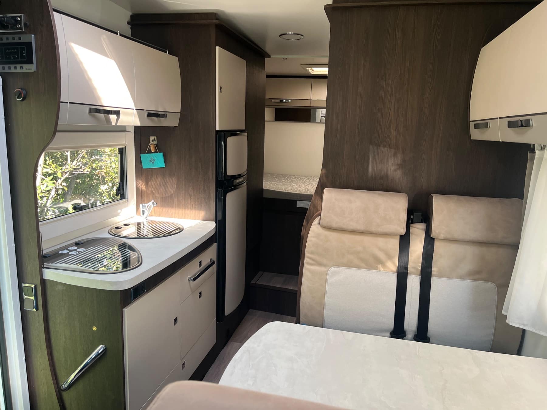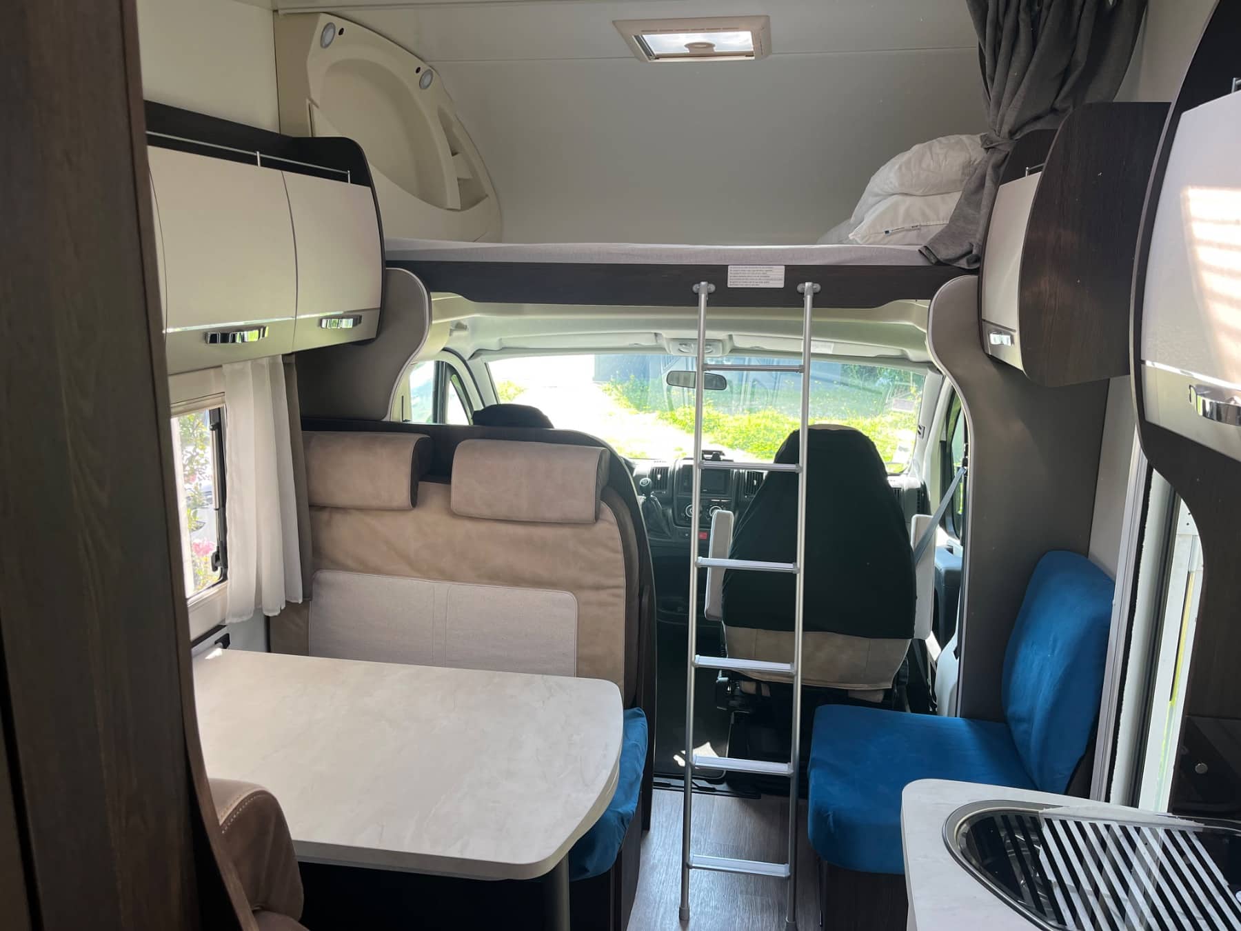 Le camping-car capucine se distingue par sa capacité à accueillir jusqu'à 6 personnes, offrant autant de places assises que de couchages. Profitez d'un lit capucine spacieux et d'un lit transversal pour des nuits reposantes après vos journées de découvertes.
