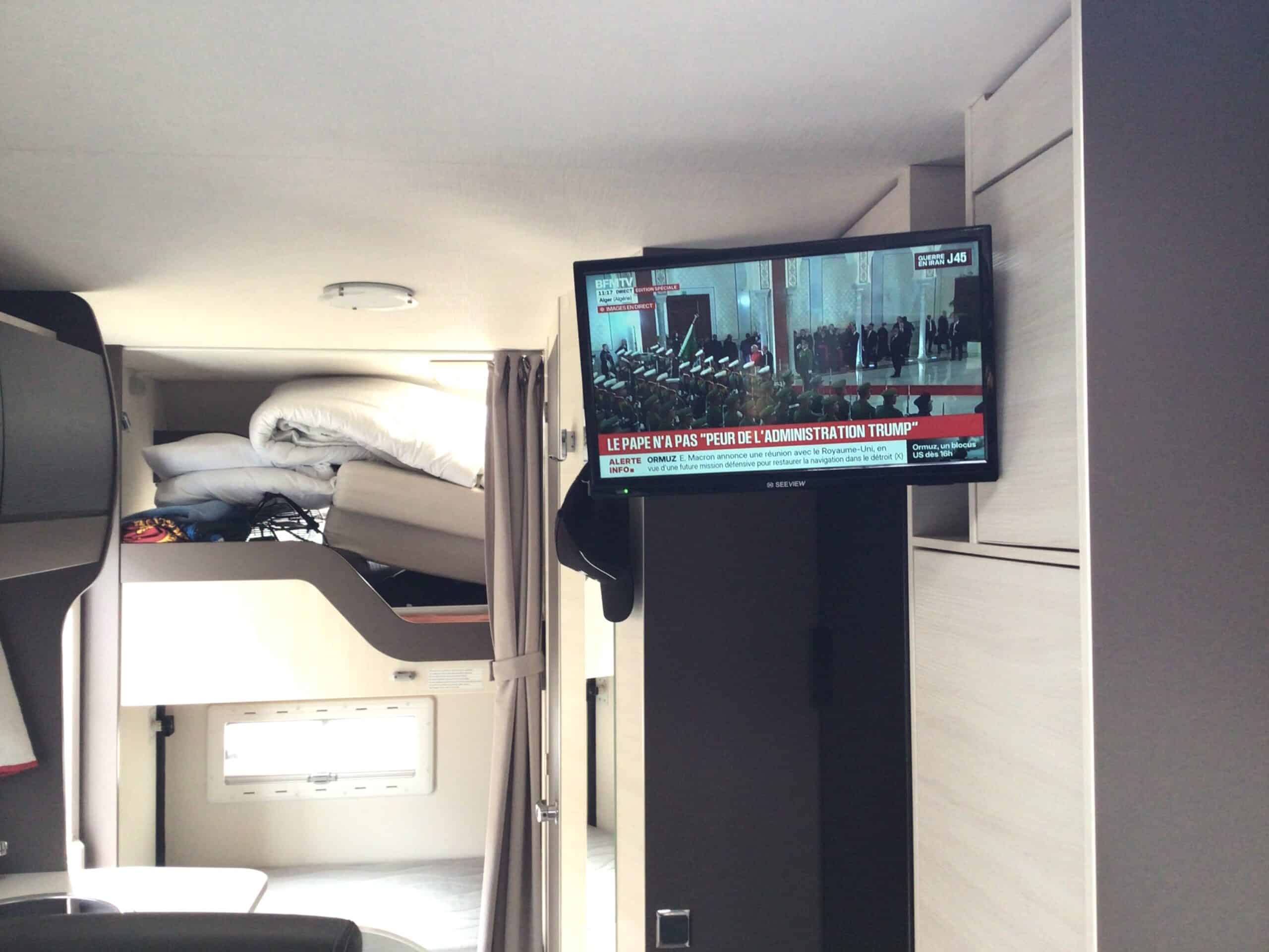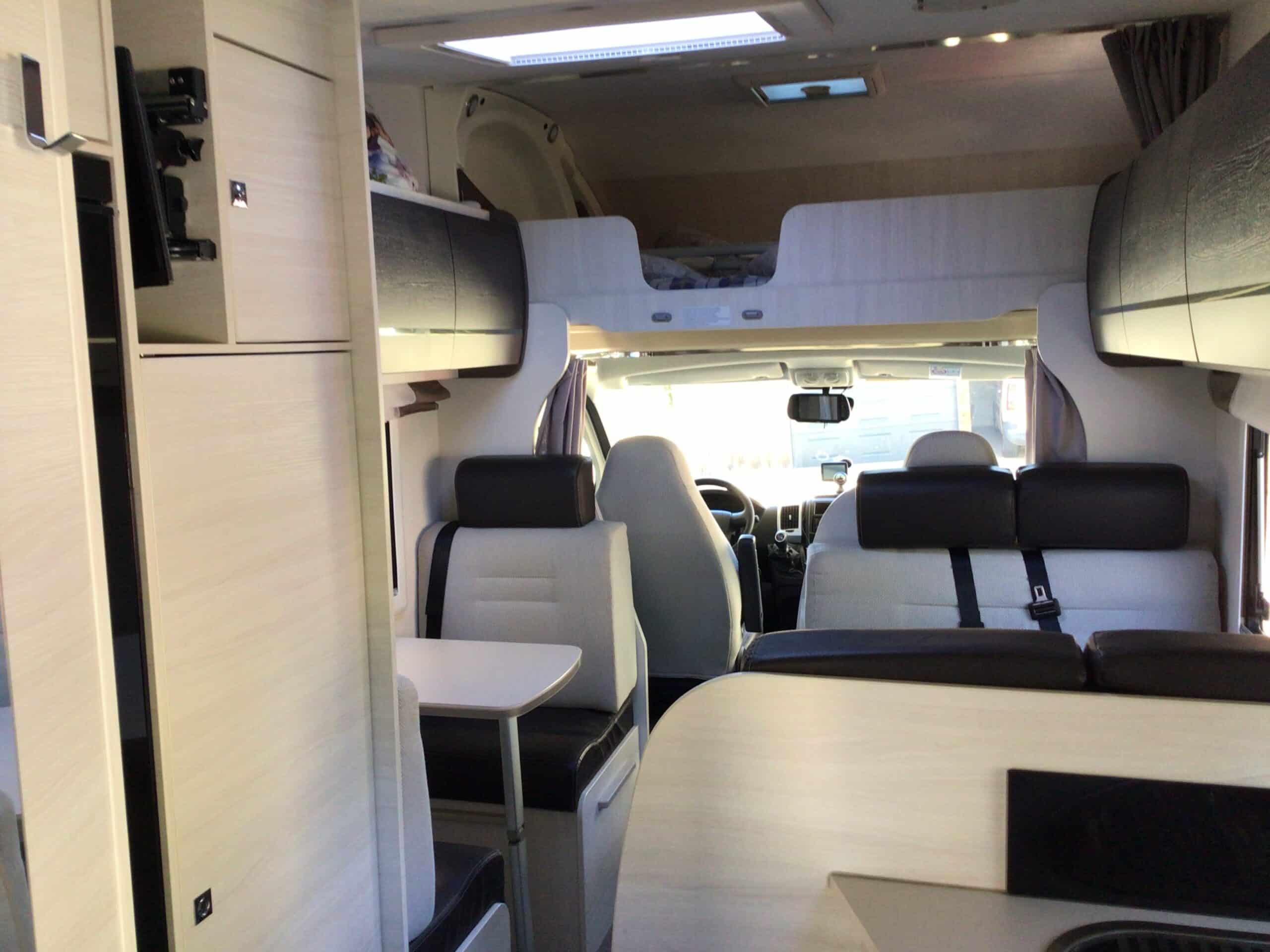 Camping-car Challenger blanc stationné près d’un bâtiment