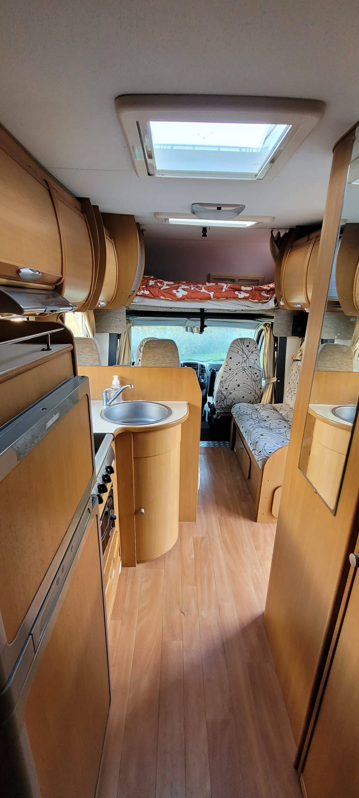Conçu pour accueillir jusqu'à 5 personnes assises et offrir 6 couchages confortables, ce camping-car capucine est parfait pour les voyages en groupe. Profitez d'une nuit paisible grâce aux lits capucine et lits transversaux. De plus, il est équipé de toutes les commodités nécessaires pour un séjour agréable :