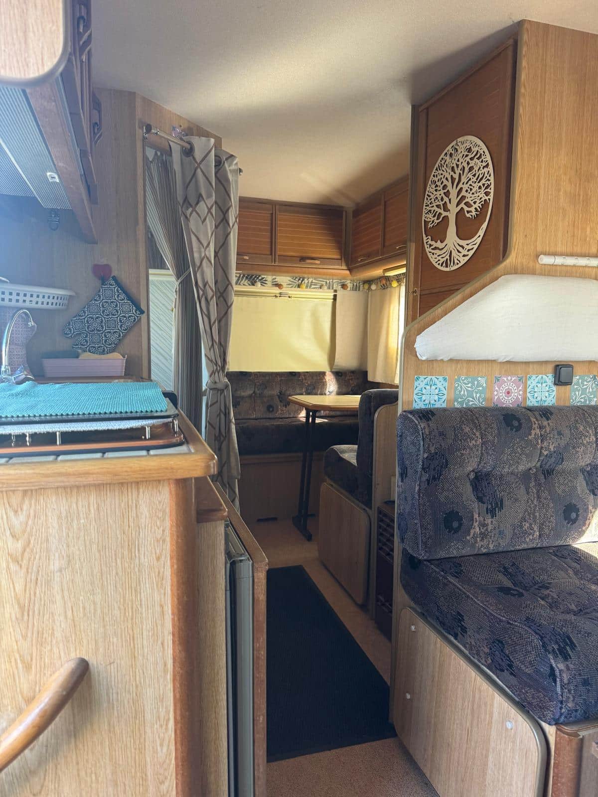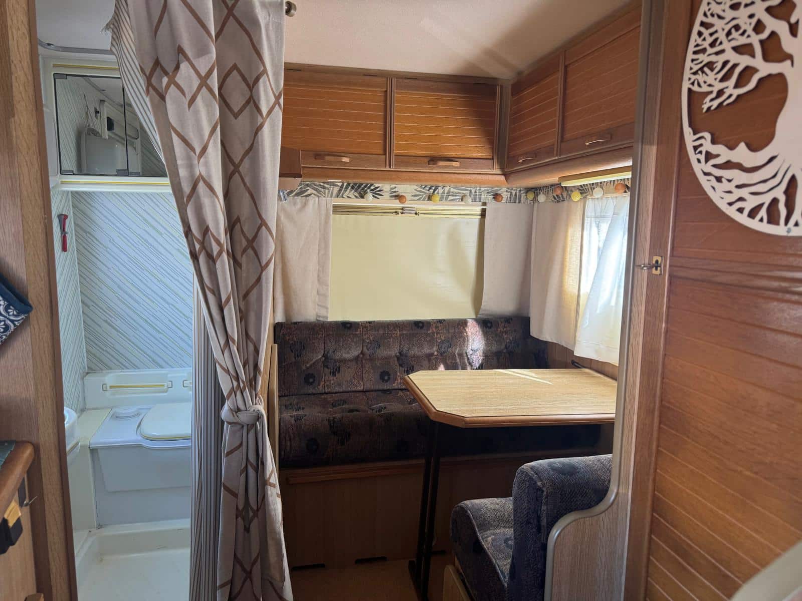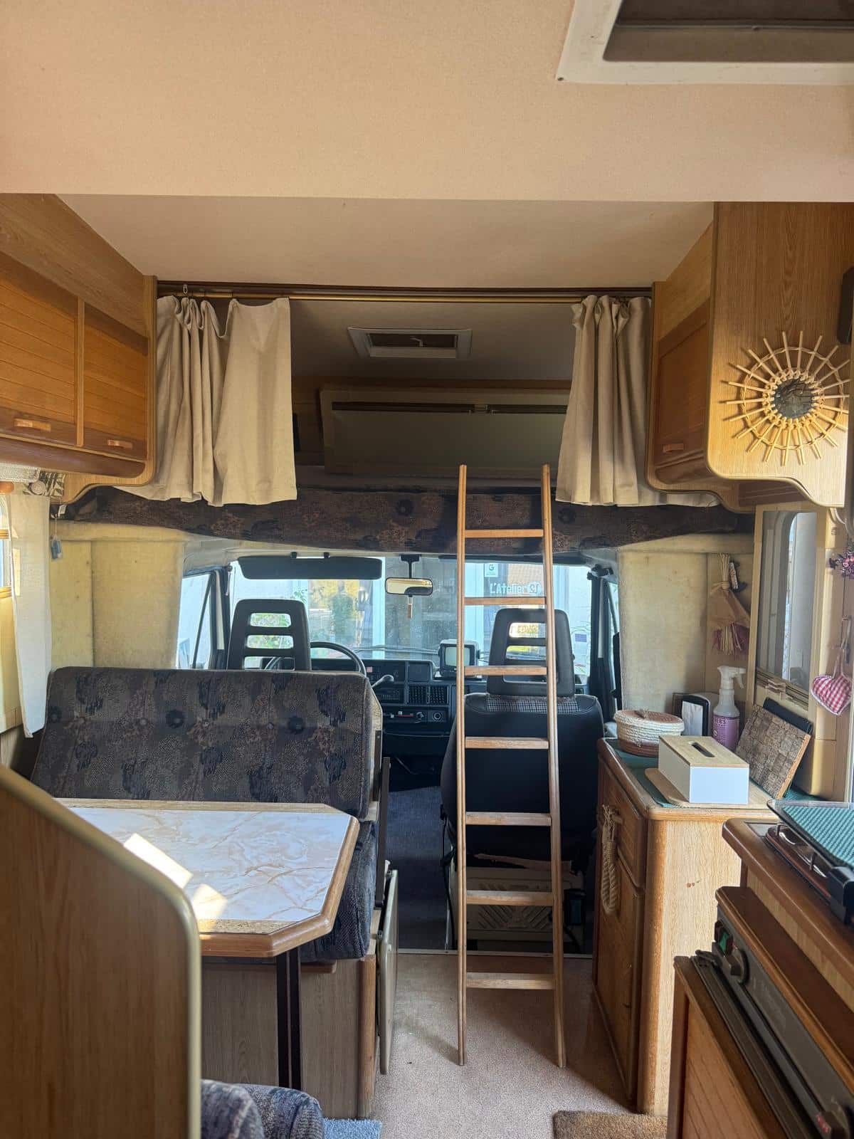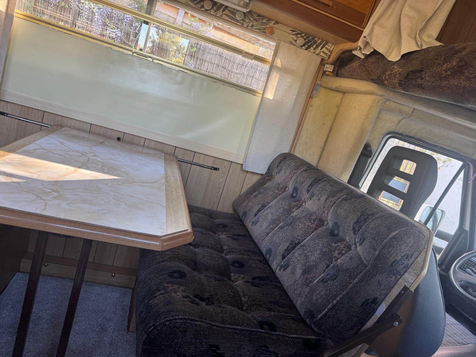 Intérieur de camping-car avec banquette et table