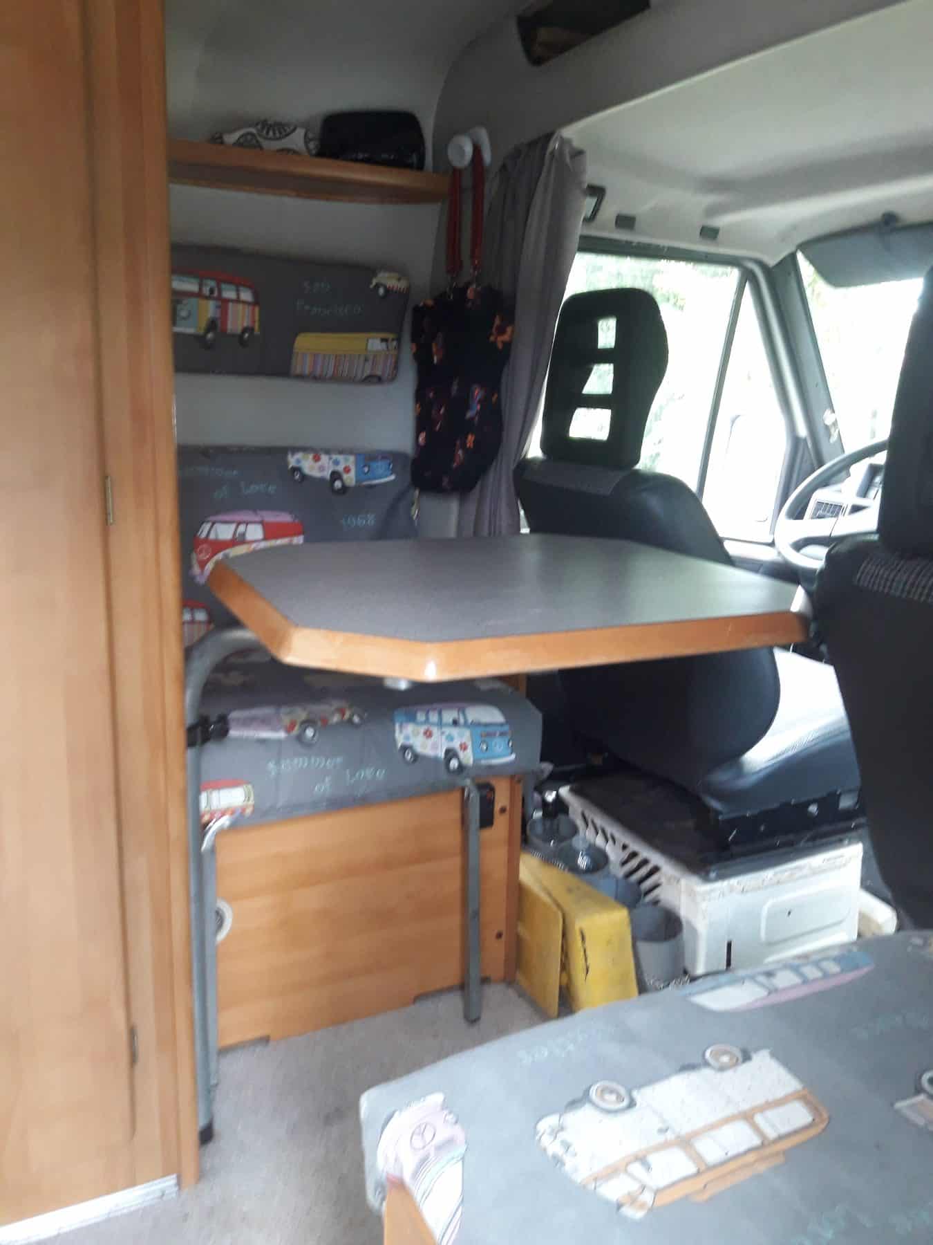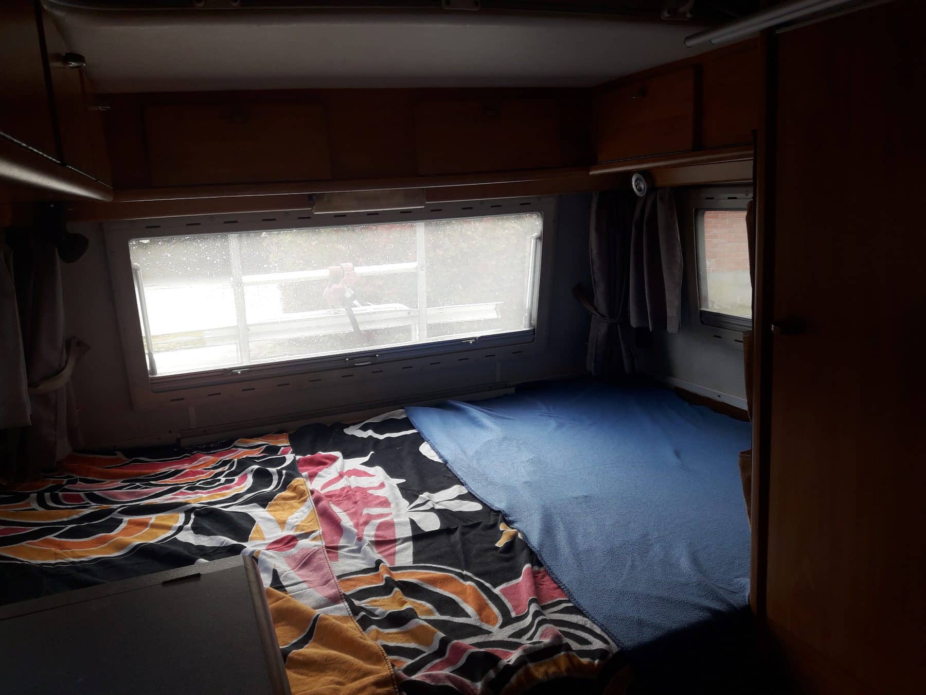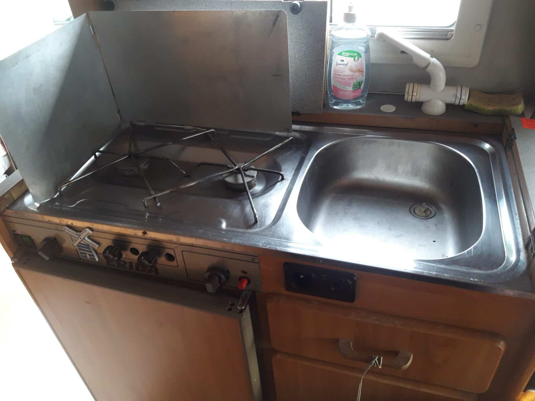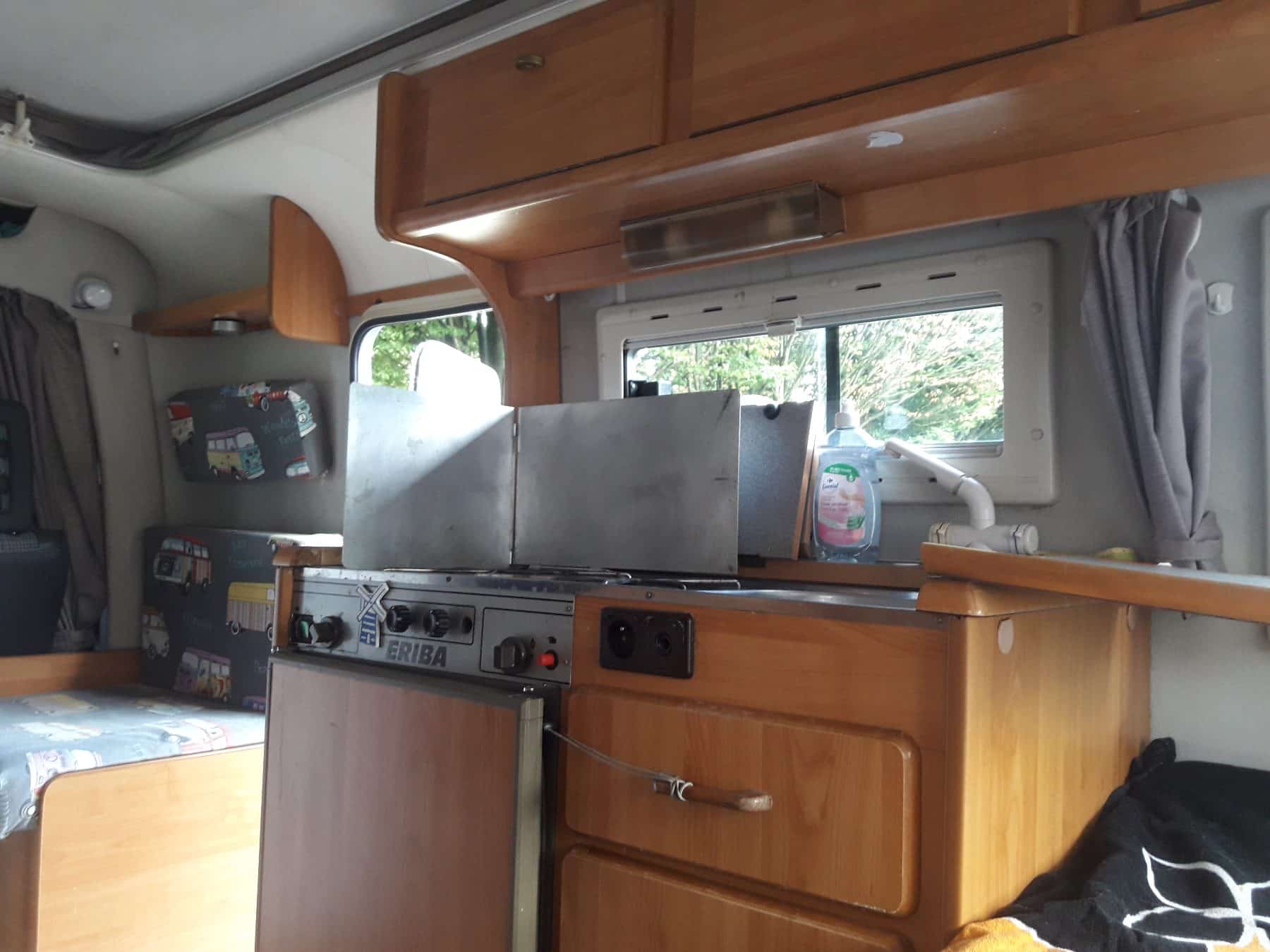 Au niveau habitacle: chauffage et chauffe eau à réparer, feu deux gaz, réfrigérateur tri-mixte en état de fonctionnement, porte vélo pour 4, attache remorque, stores occultants, sièges avant pivotants.