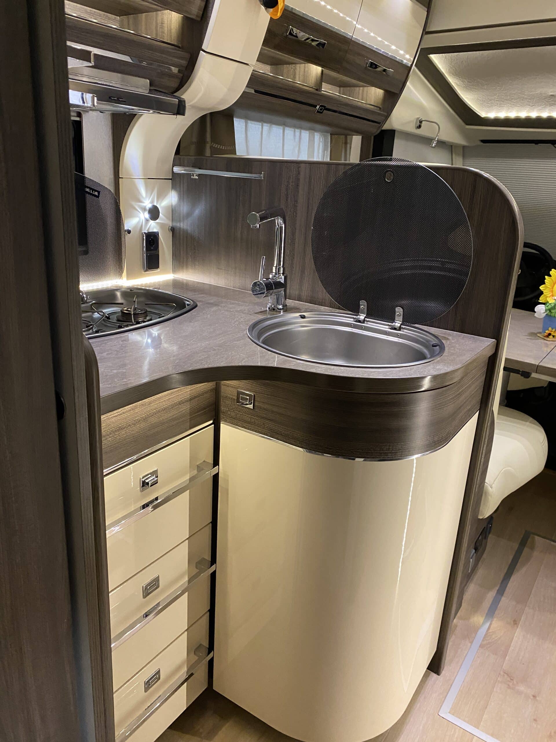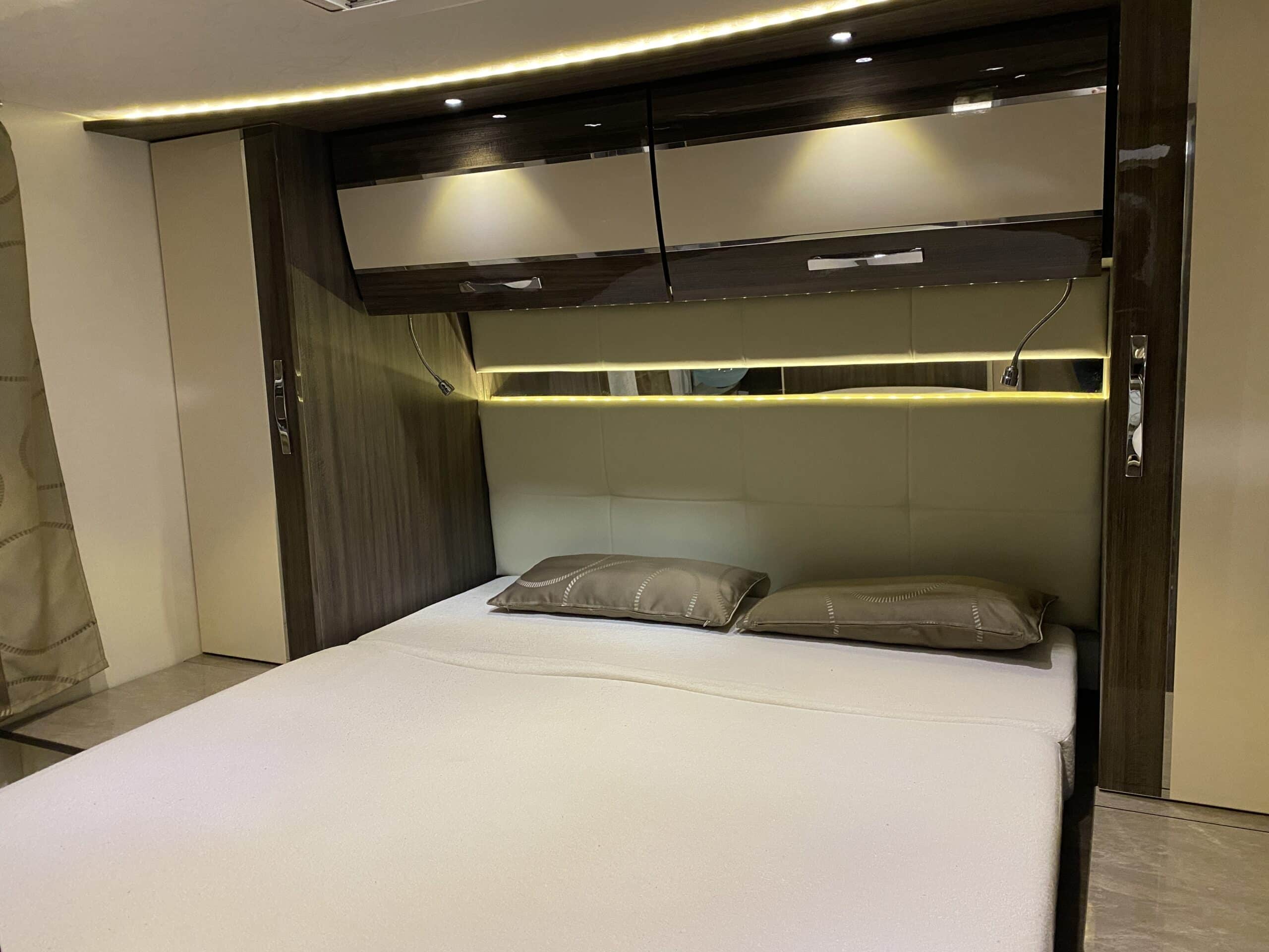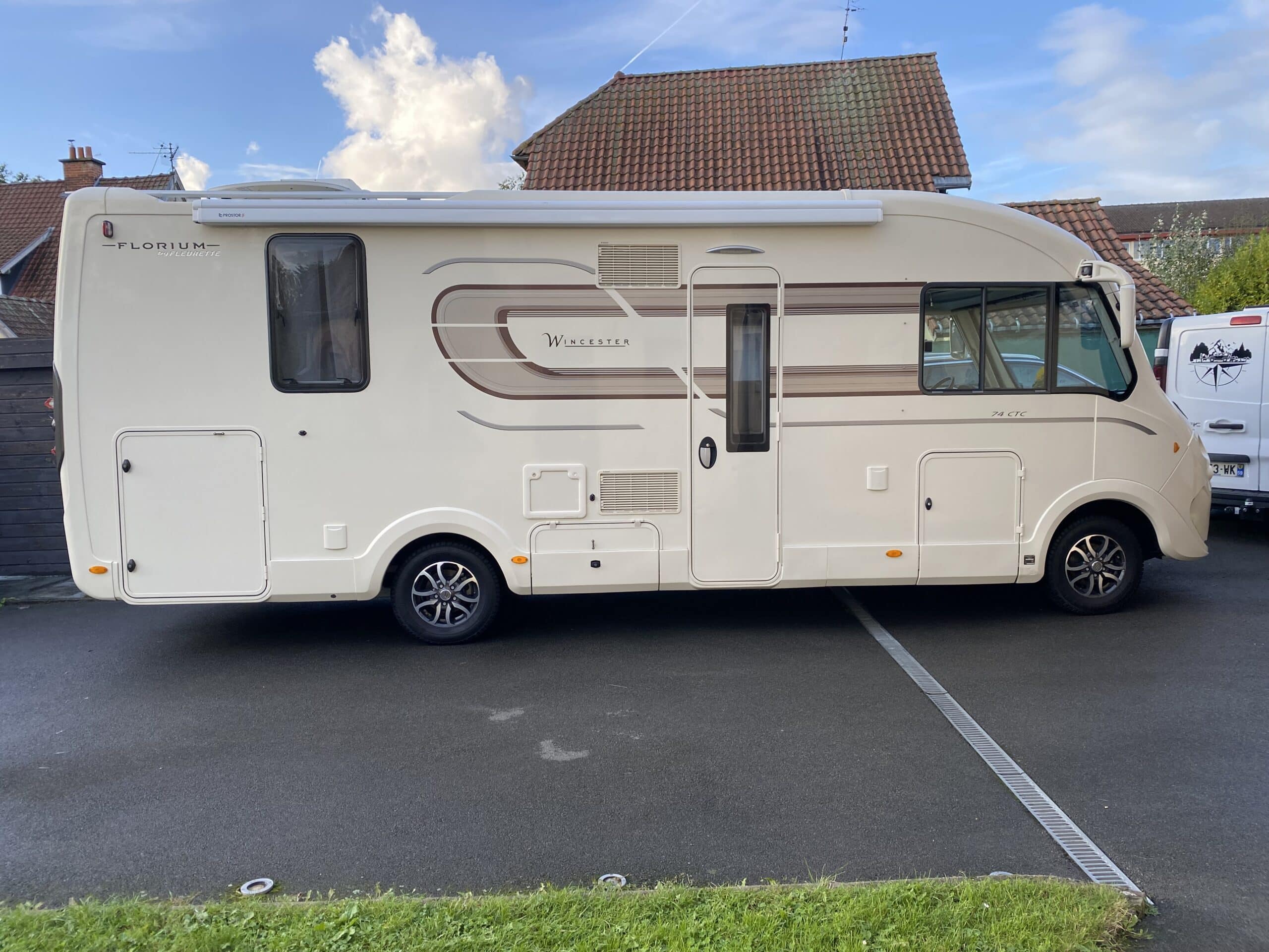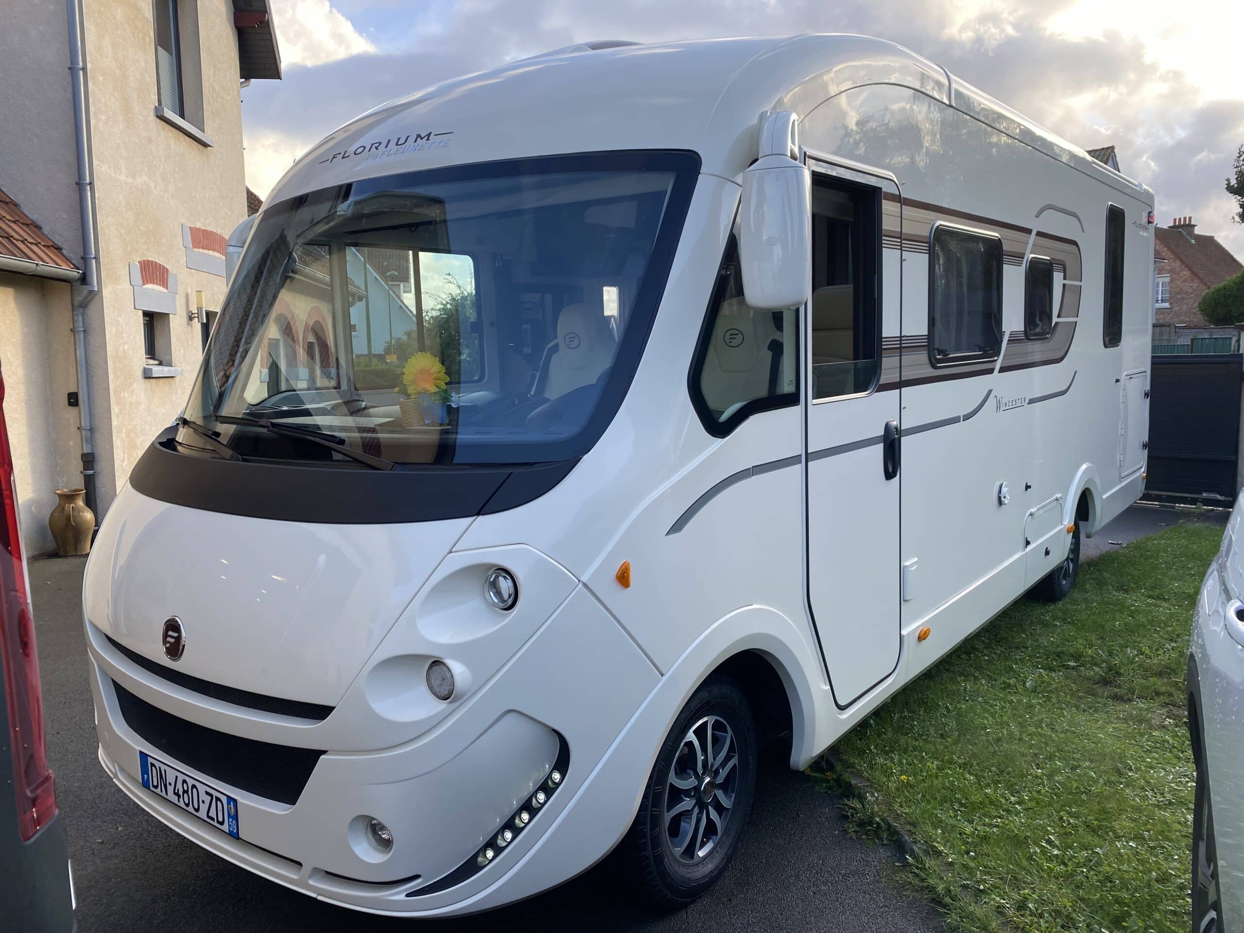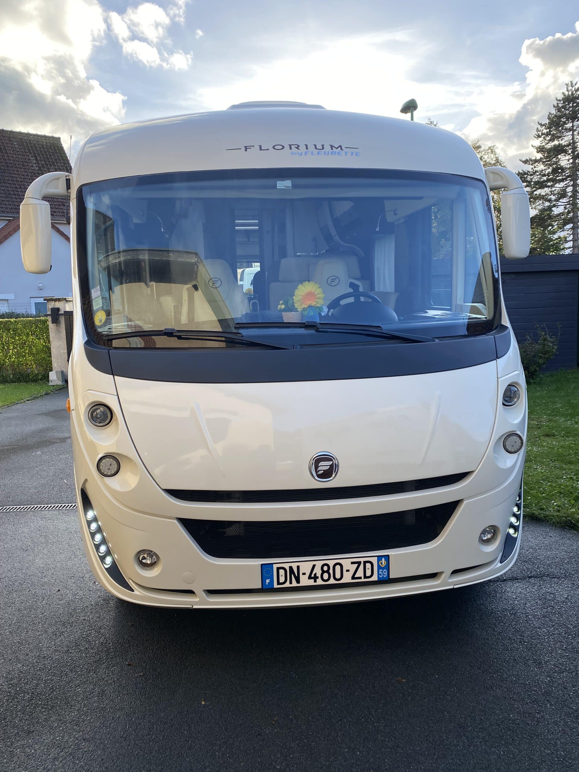 Superbe camping car Florium très peu roulé resté dans un état proche du neuf avoir absolument entièrement équipé store auvent 4metres – grand frigo -congélateur- chauffage truma -douche séparé – toilette et lavabo séparé – 1 télé Salon -1 télé chambre parentale lit double + grand lit double capucine relevable – parabole automatique – -batterie lithium -convertisseur -panneau solaire- four – attelage- camping car poids lourd mais possible si désiré de repasser en VL 3500kg
