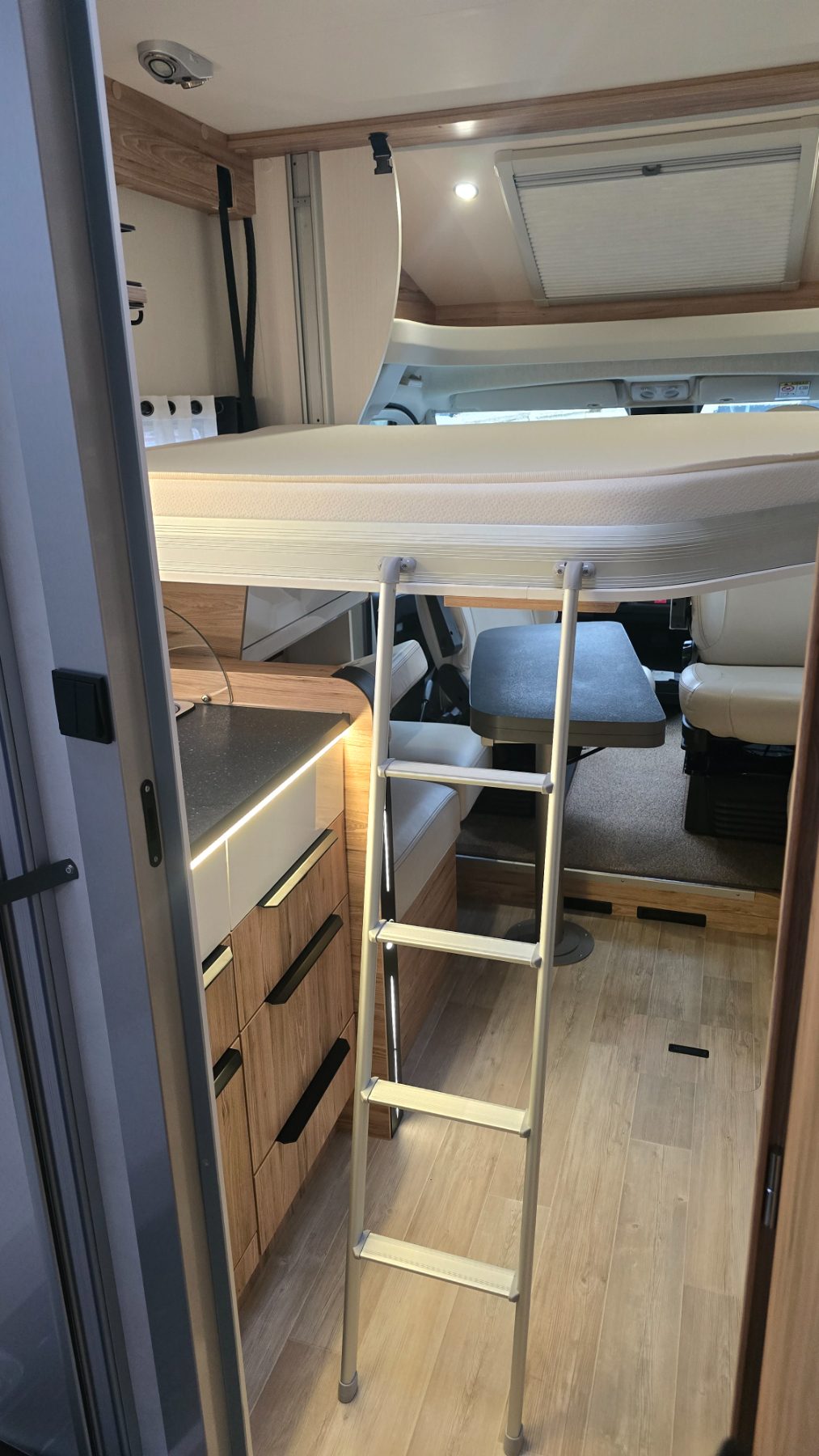 • Confort intérieur : Avec quatre places assises et quatre couchages, dont un lit central et un lit escamotable, il offre un espace de vie pratique et confortable.