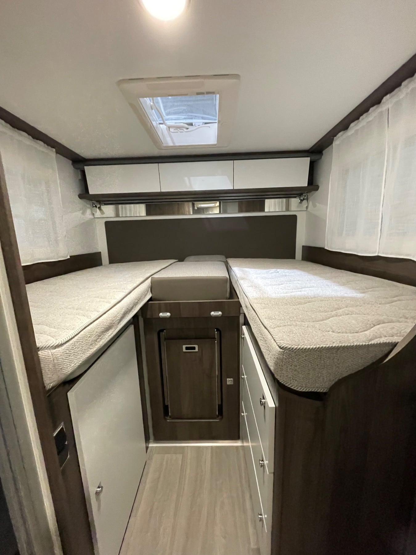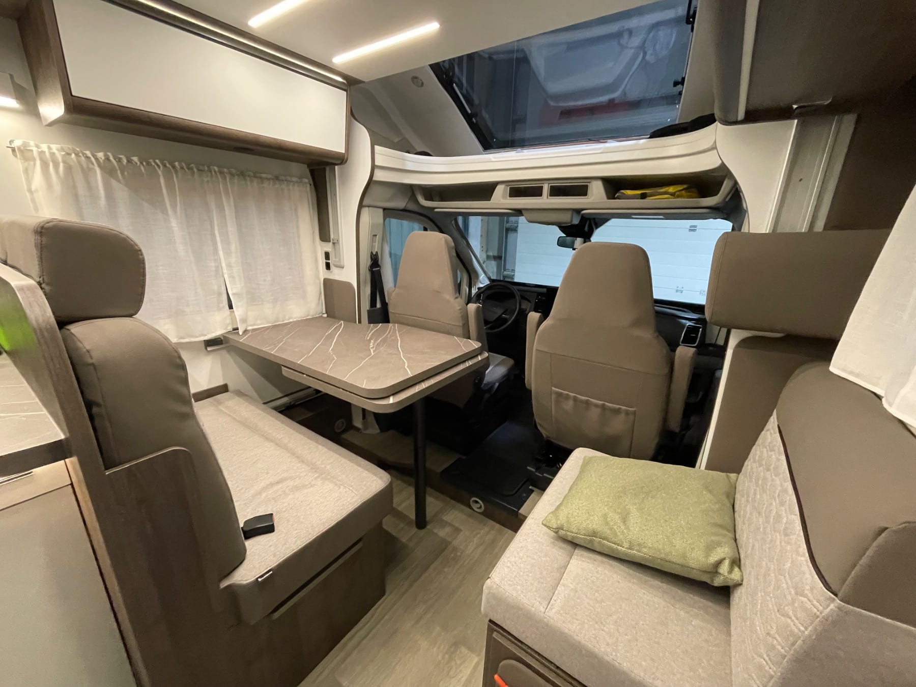 Profitez d'un intérieur spacieux et bien aménagé avec 4 places assises et 5 couchages, dont un lit escamotable et des lits jumeaux, pour un confort optimal. Ses équipements incluent :