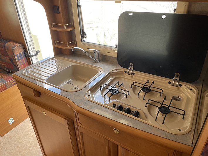 Profitez de l'espace optimisé de ce camping-car, qui peut accueillir jusqu'à 5 personnes assises et offre 3 couchages confortables avec un lit à la française. Pour rendre vos séjours encore plus agréables, il est doté d'équipements essentiels tels que :