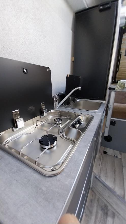 • Cuisinière à gaz et frigo pour cuisiner vos plats préférés où que vous soyez.