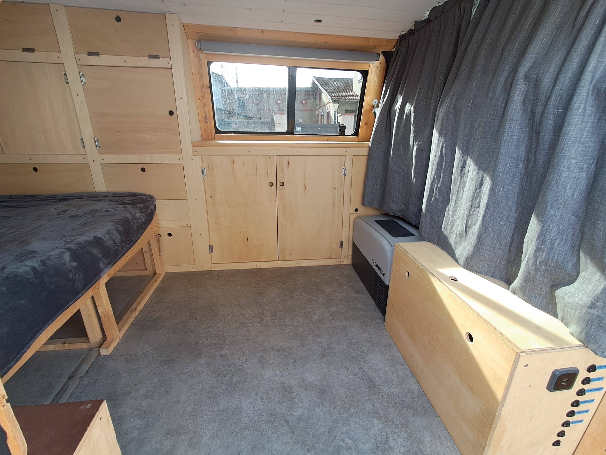 Conçu pour le confort, ce fourgon dispose de 3 places assises et de 2 couchages avec un lit escamotable, parfait pour une utilisation pratique et un gain d'espace. Équipé d'un frigo, il offre toutes les commodités nécessaires pour vos voyages.