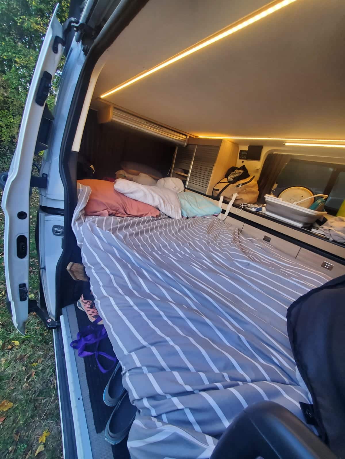 4 couchages : banquette transformable en lit 110*200 et lit dans le toit relevable 116*190.