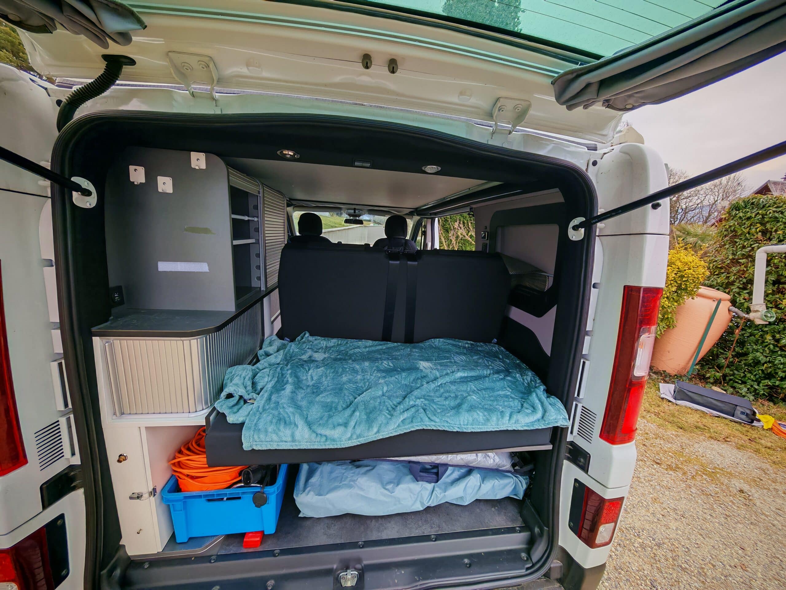 Ce van aménagé de 2022 est équipé pour vous offrir tout le confort nécessaire lors de vos voyages. Avec une capacité d'accueil de 4 personnes, il dispose de deux types de couchages : un lit central et un lit escamotable, parfaits pour une famille ou un groupe d'amis.