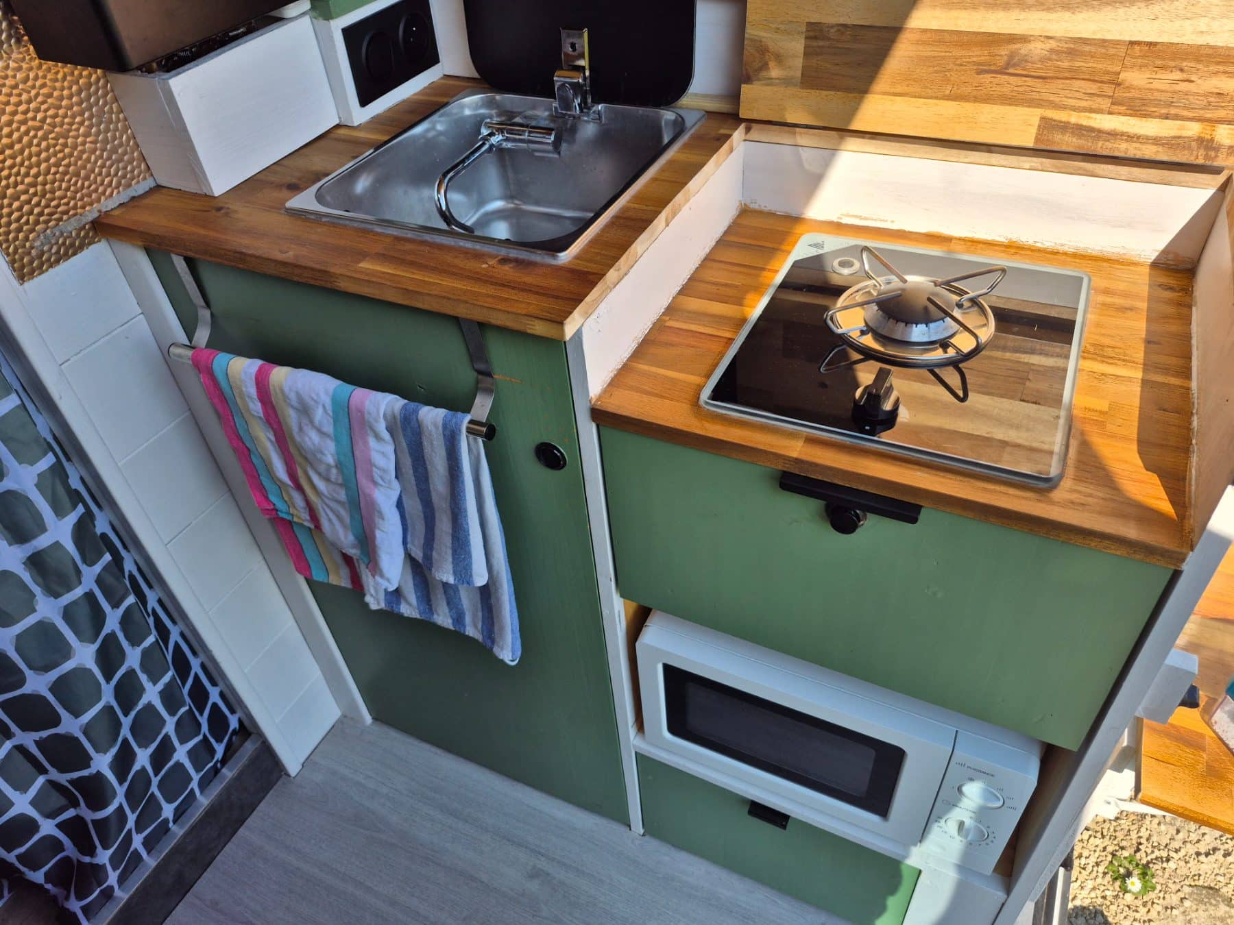 Petite cuisine compacte avec évier et plaque gaz