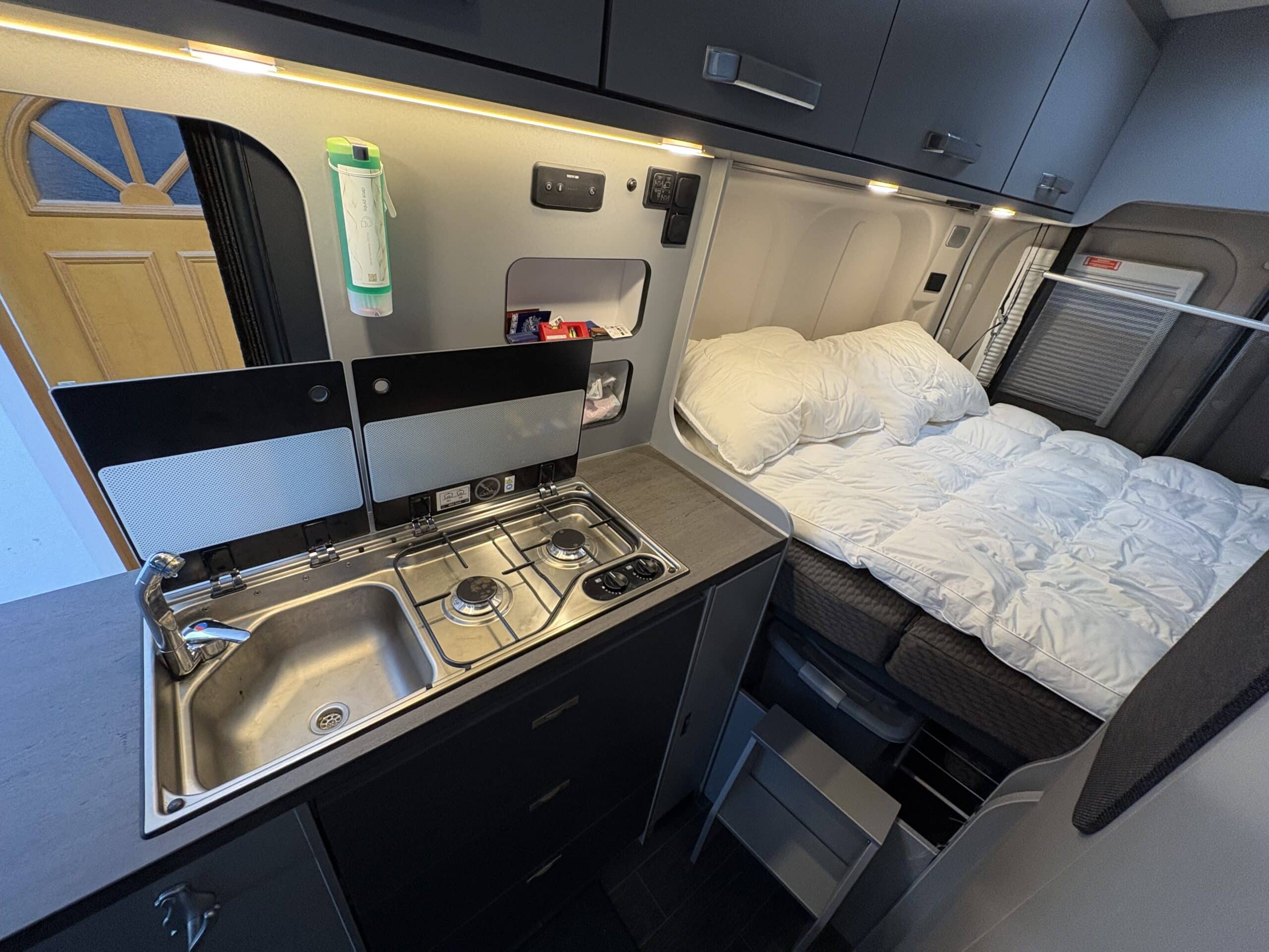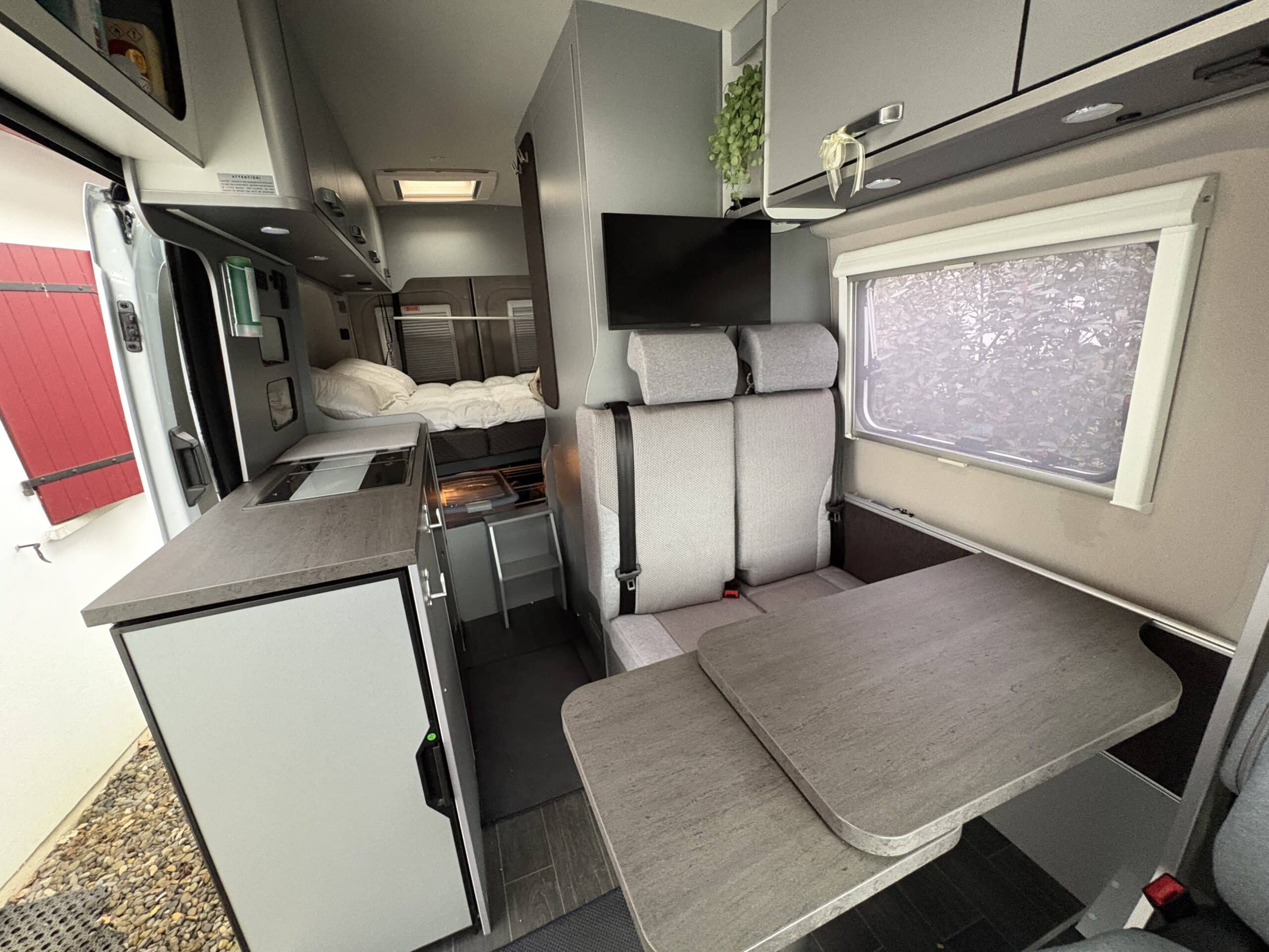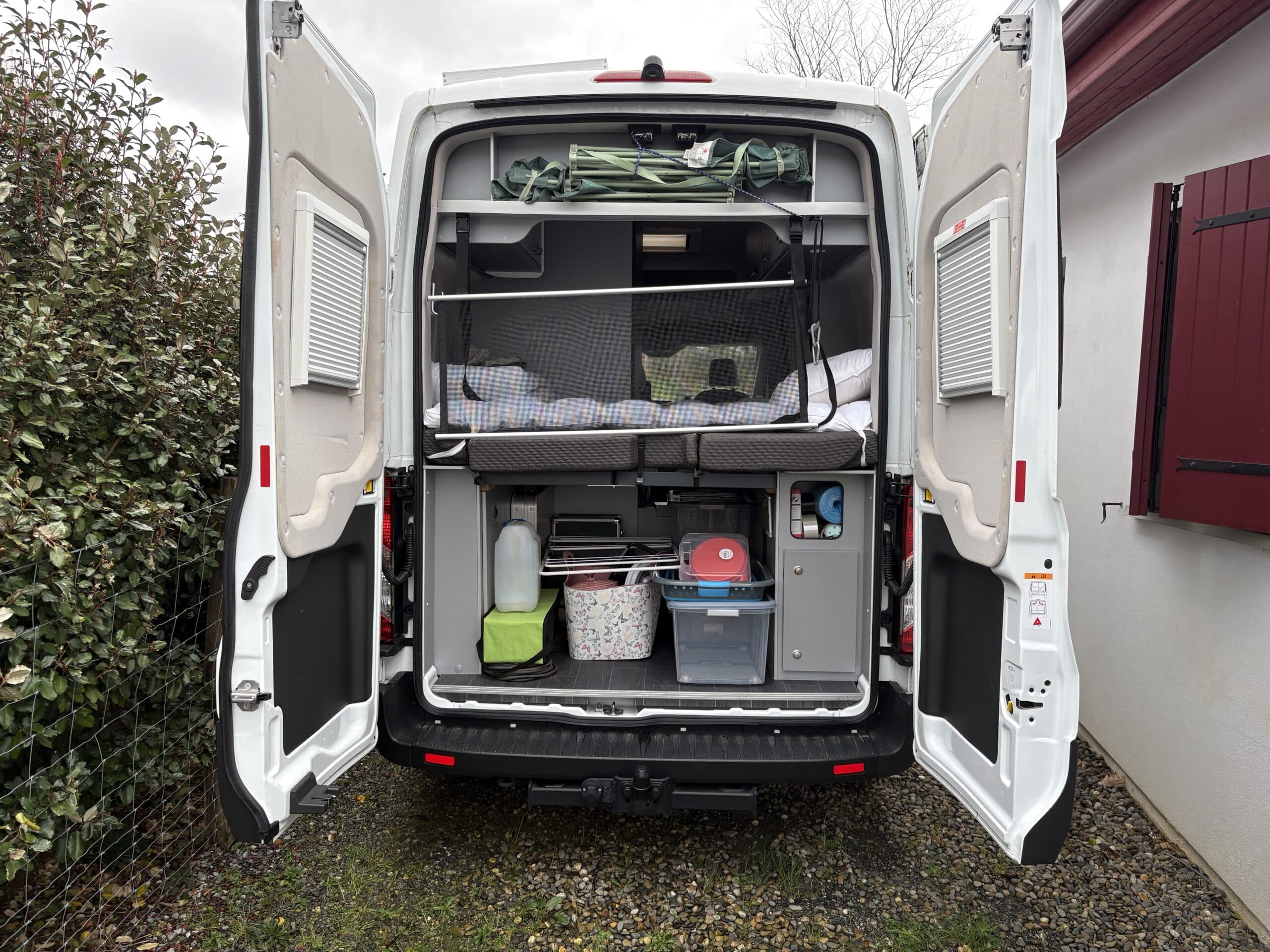 Avec un agencement intelligent, ce van offre 4 places assises et 3 couchages, parfait pour une famille ou un groupe d'amis. Le lit transversal optimise l'espace et assure un sommeil réparateur après une journée d'aventure.