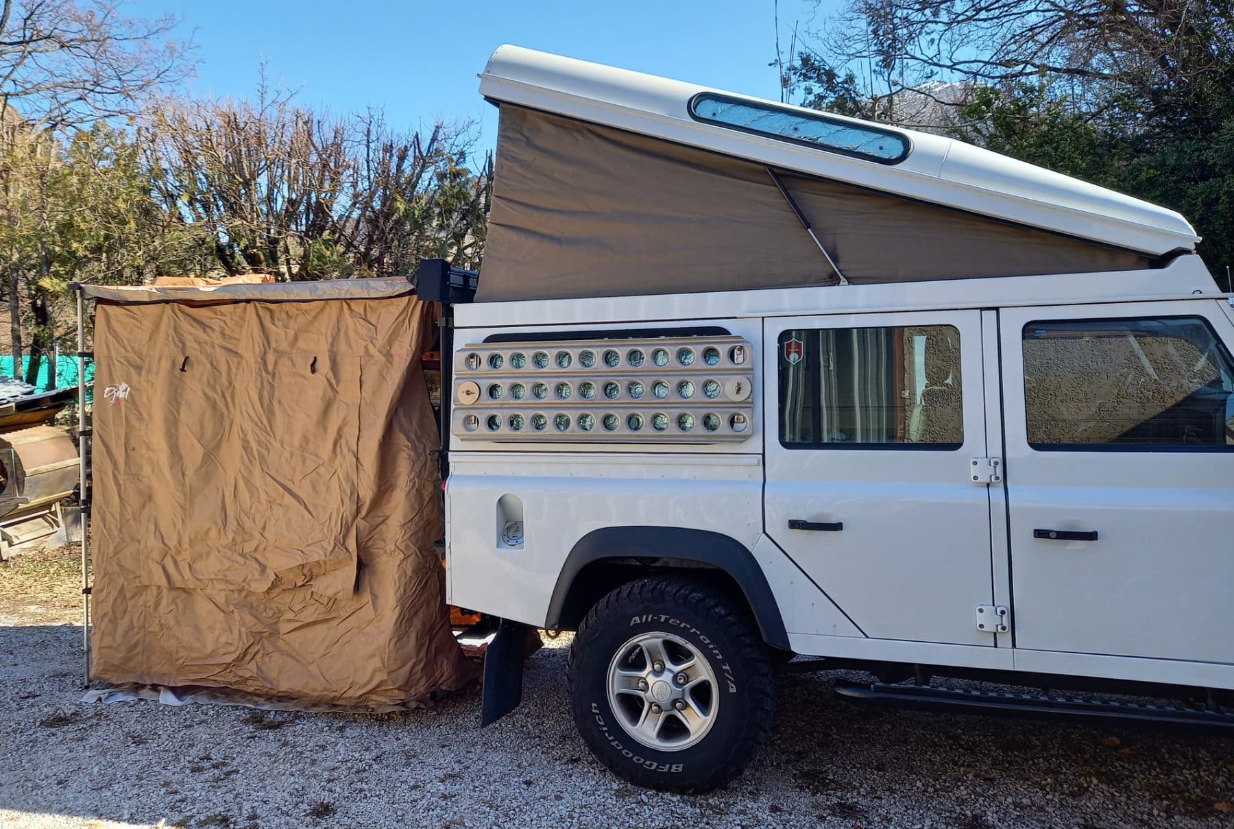 Ce Defender n'est pas seulement robuste; il est aussi conçu pour le confort. Équipé d'une cuisinière à gaz, d'une douche, d'un frigo et d'un WC compost, il vous offre tout le nécessaire pour vivre des aventures sans compromis sur le confort. Que vous soyez en pleine nature ou dans un camping, vous disposerez de toutes les commodités modernes.