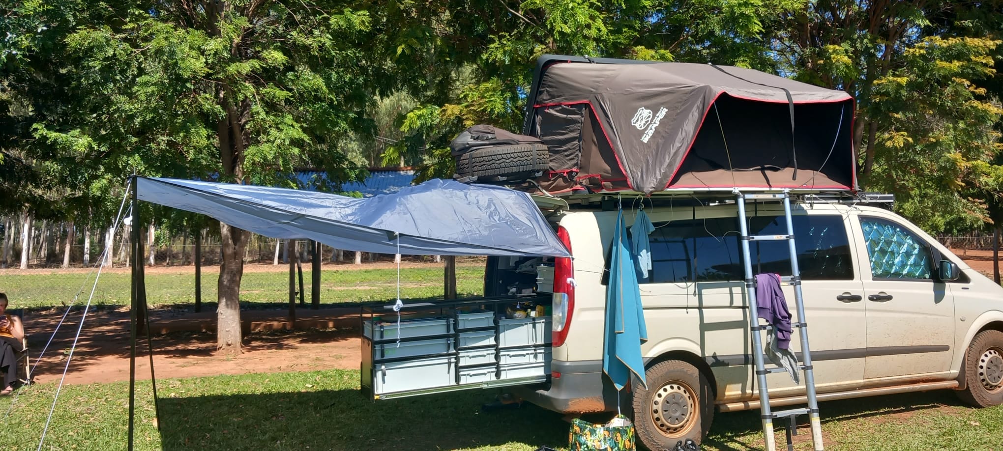4+1 Schlafplätze (tente de toit + zusätzliches Hängebett in der Kabine)