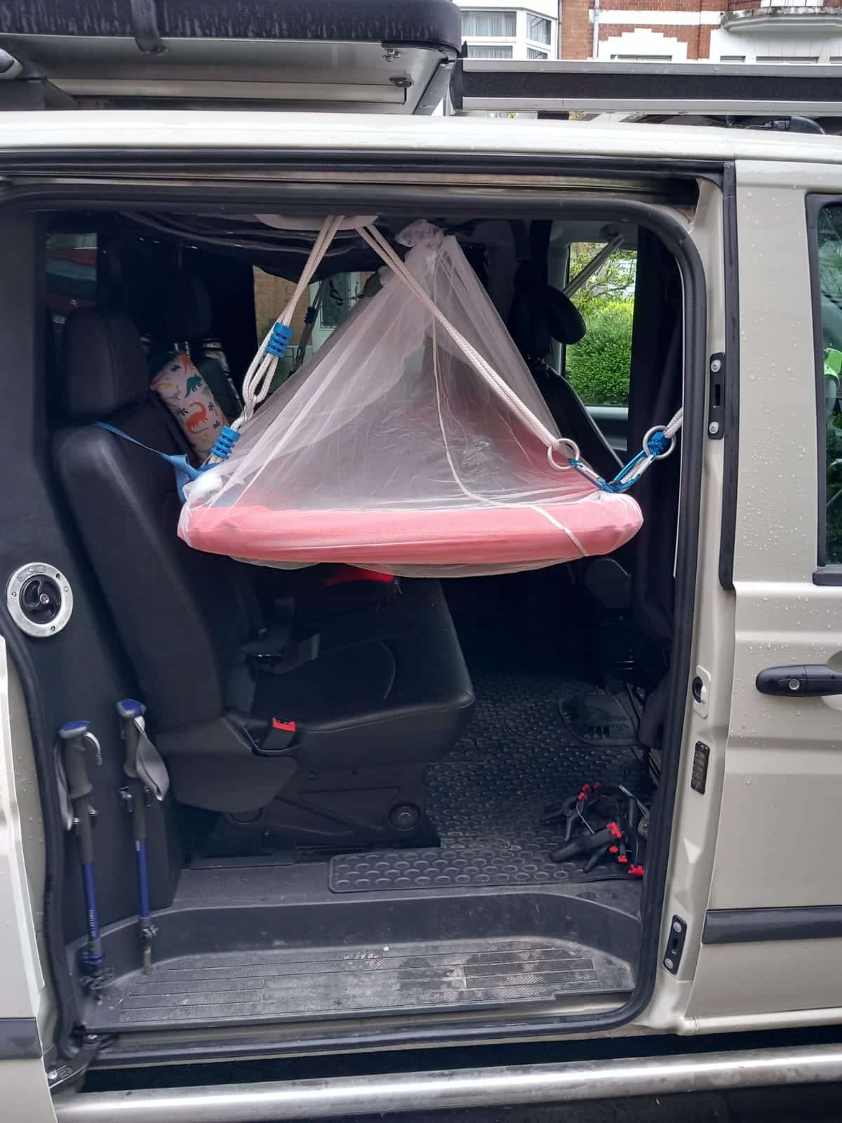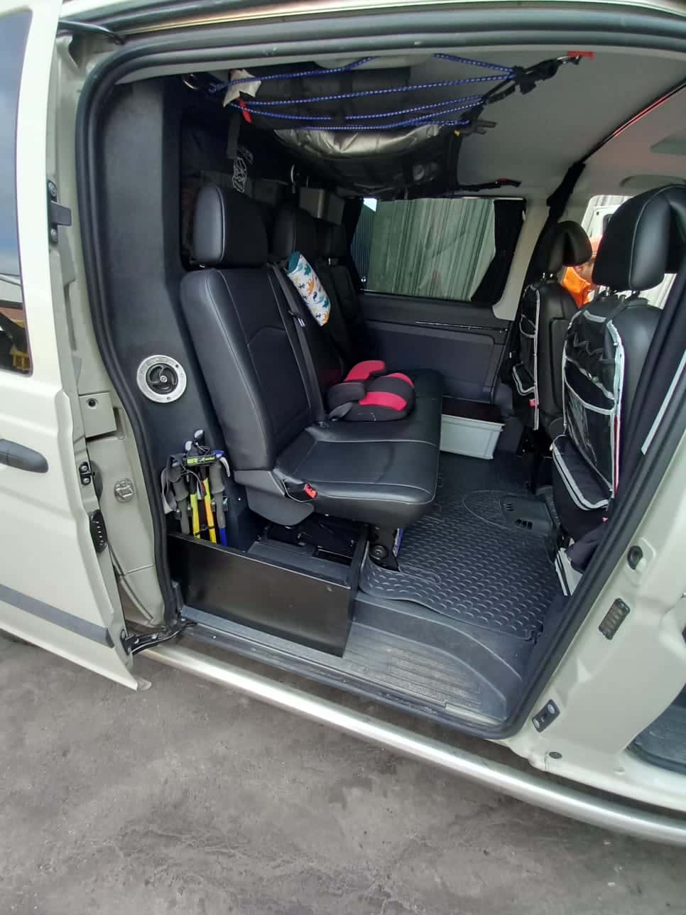 2 große Gepäcknetze an der Decke (hintere Kabine + Kofferraum)