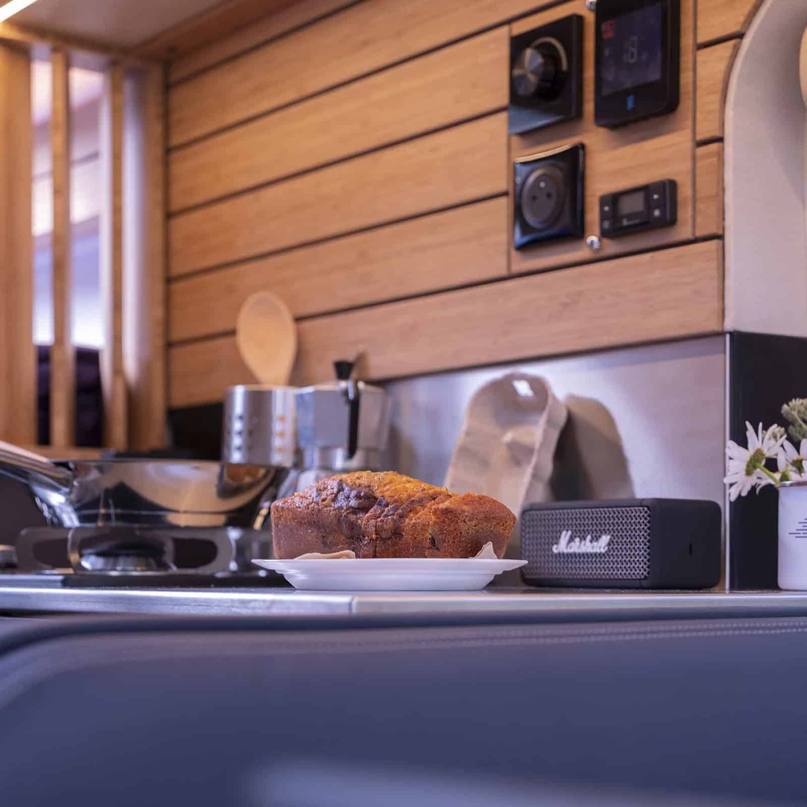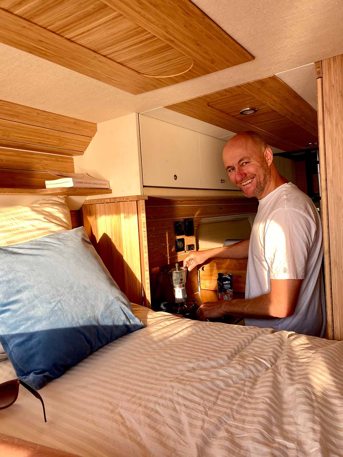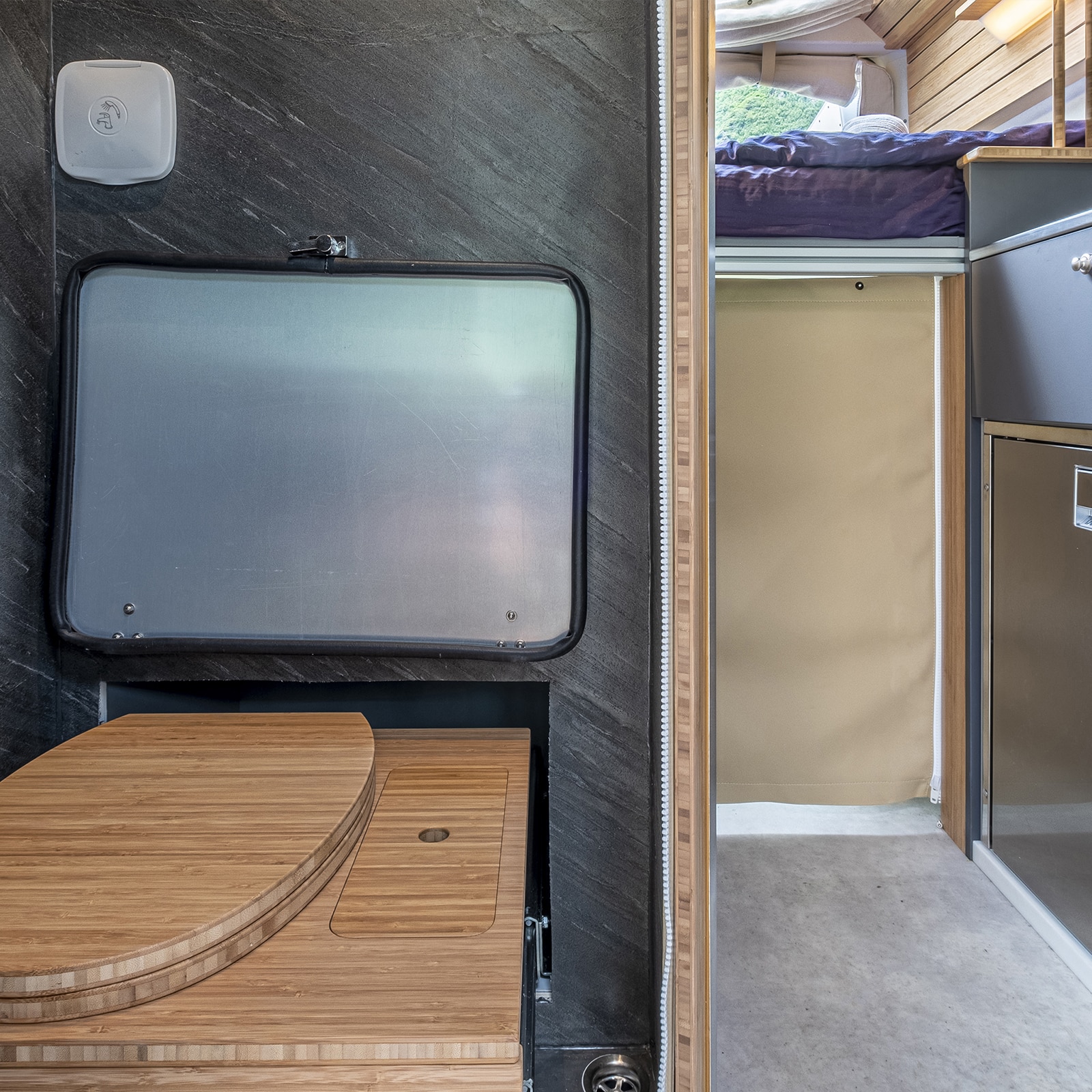 Ein einzigartiges van aménagé, das wie ein echtes Nomadenhotel gestaltet wurde, um zu viert zu reisen und dabei ein Niveau an Komfort, Reichweite und Verarbeitung zu bieten, das auf dem Markt selten zu finden ist.
