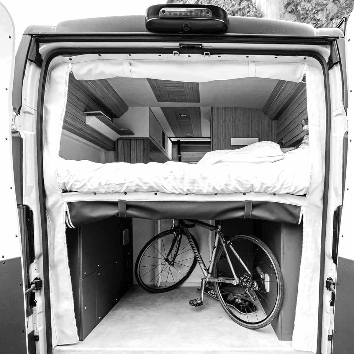 Das Fahrzeug wurde in seiner ursprünglichen Nutzfahrzeugversion (2 Vordersitze mit Trennwand, völlig leerer Rückraum) ausgewählt, um einen vollständigen und maßgeschneiderten Umbau zu ermöglichen.