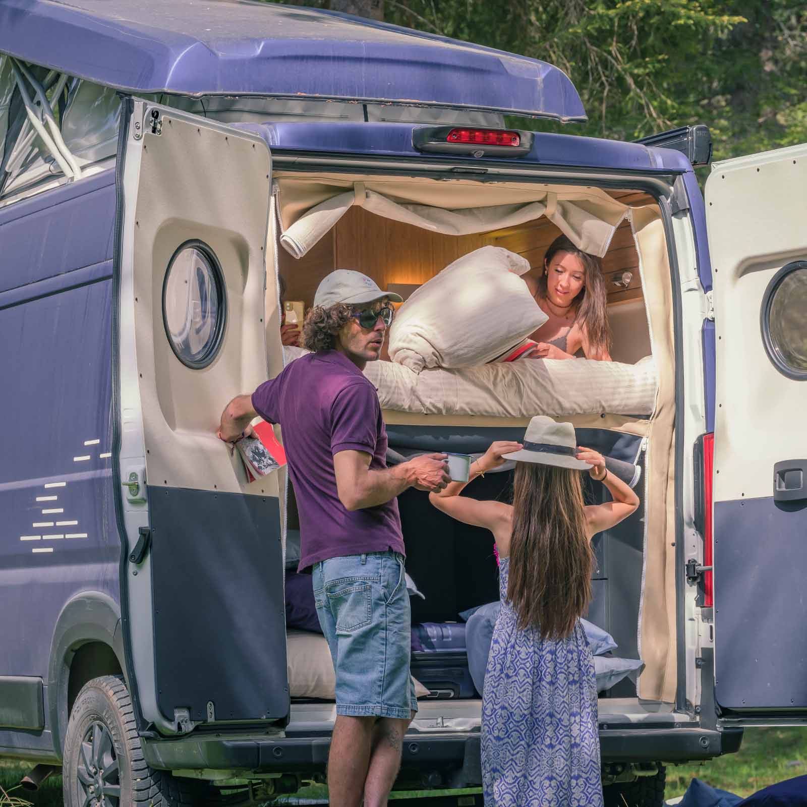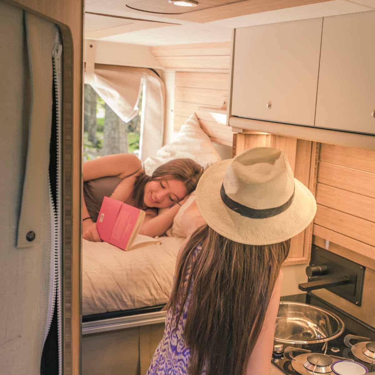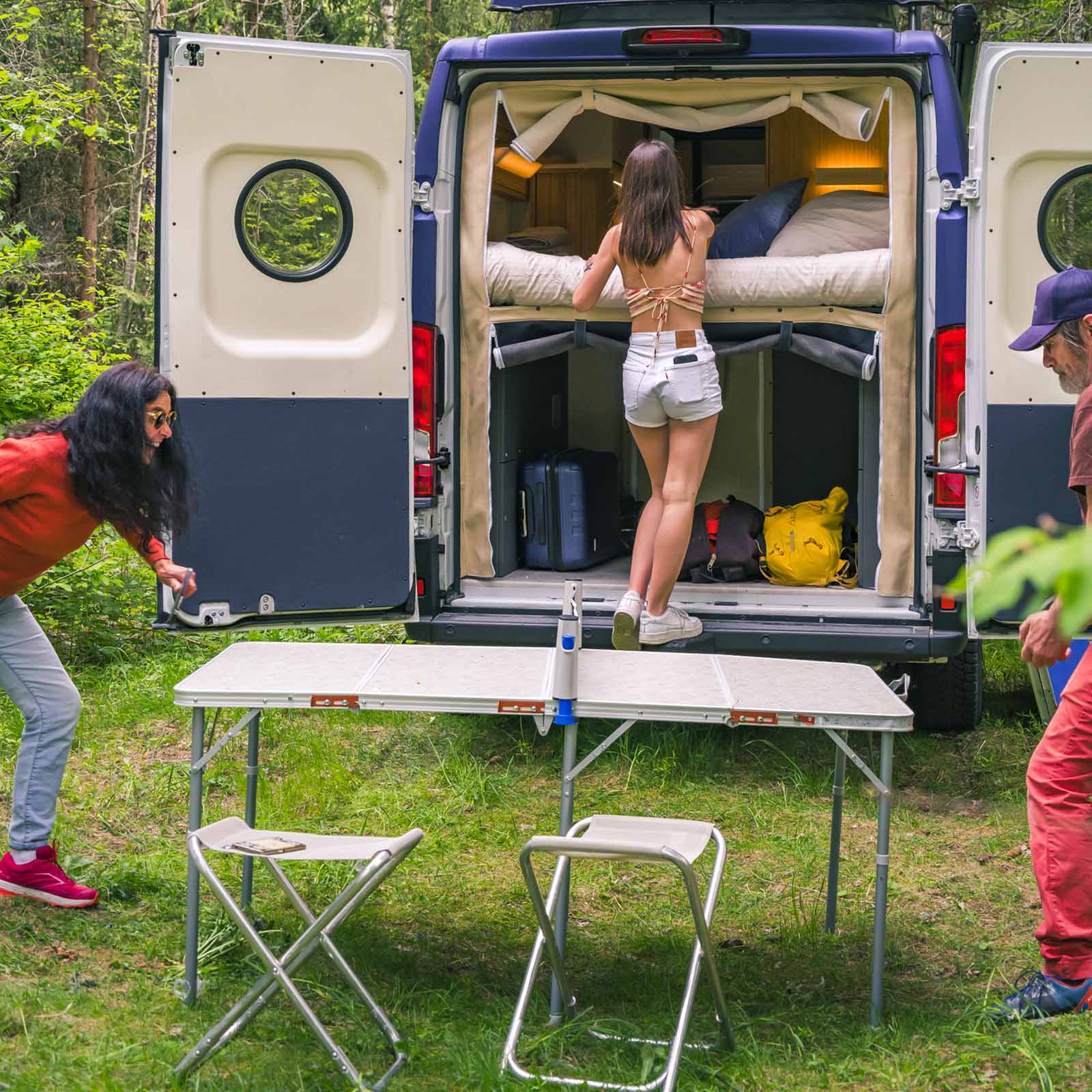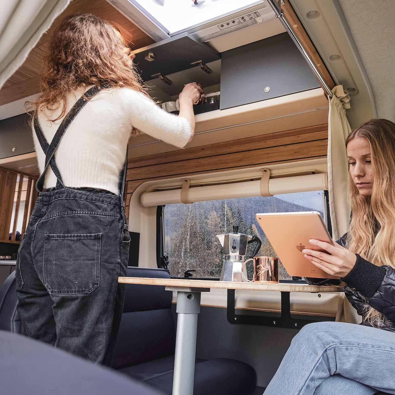 Voll ausgestatteter Van, der sofort reisefertig ist.